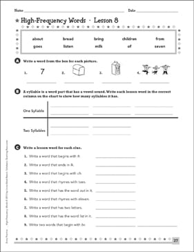 High Frequency Words For Grade 1